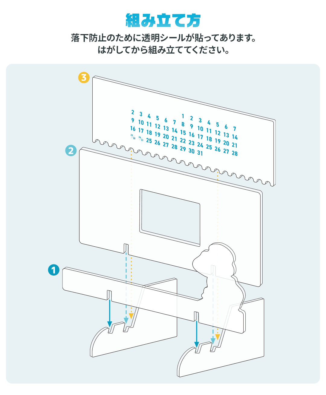 日付が書かれたパネルを動かすことで、繰り返し使用できる半永久的なカレンダーです。
