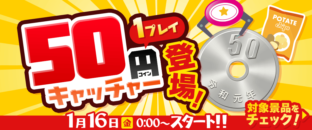 ・50円キャッチャー対象ブースは50LRCにてお楽しみいただけます。