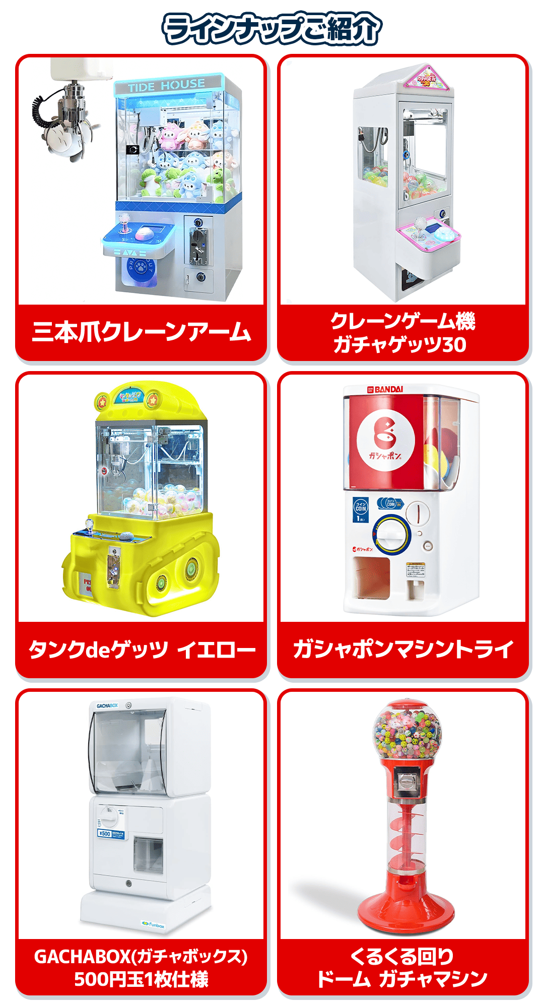 このたび、クレーンゲーム機およびガチャガチャ筐体の実機を、下記日程より展開いたします。