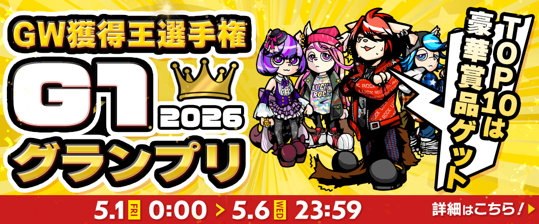 - 開催期間を過ぎますとプレイチケットは受け取れません、またプレイチケットも消失いたします。期間終了間近でのチケットの受取およびチケット利用不具合については補償対象外とさせていただきます。