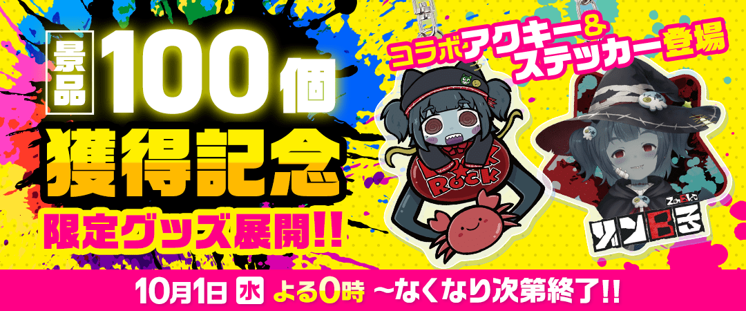 配信チャレンジ『ゾンB子100』にて、9月23日の配信で景品100個獲得を見事達成しました!